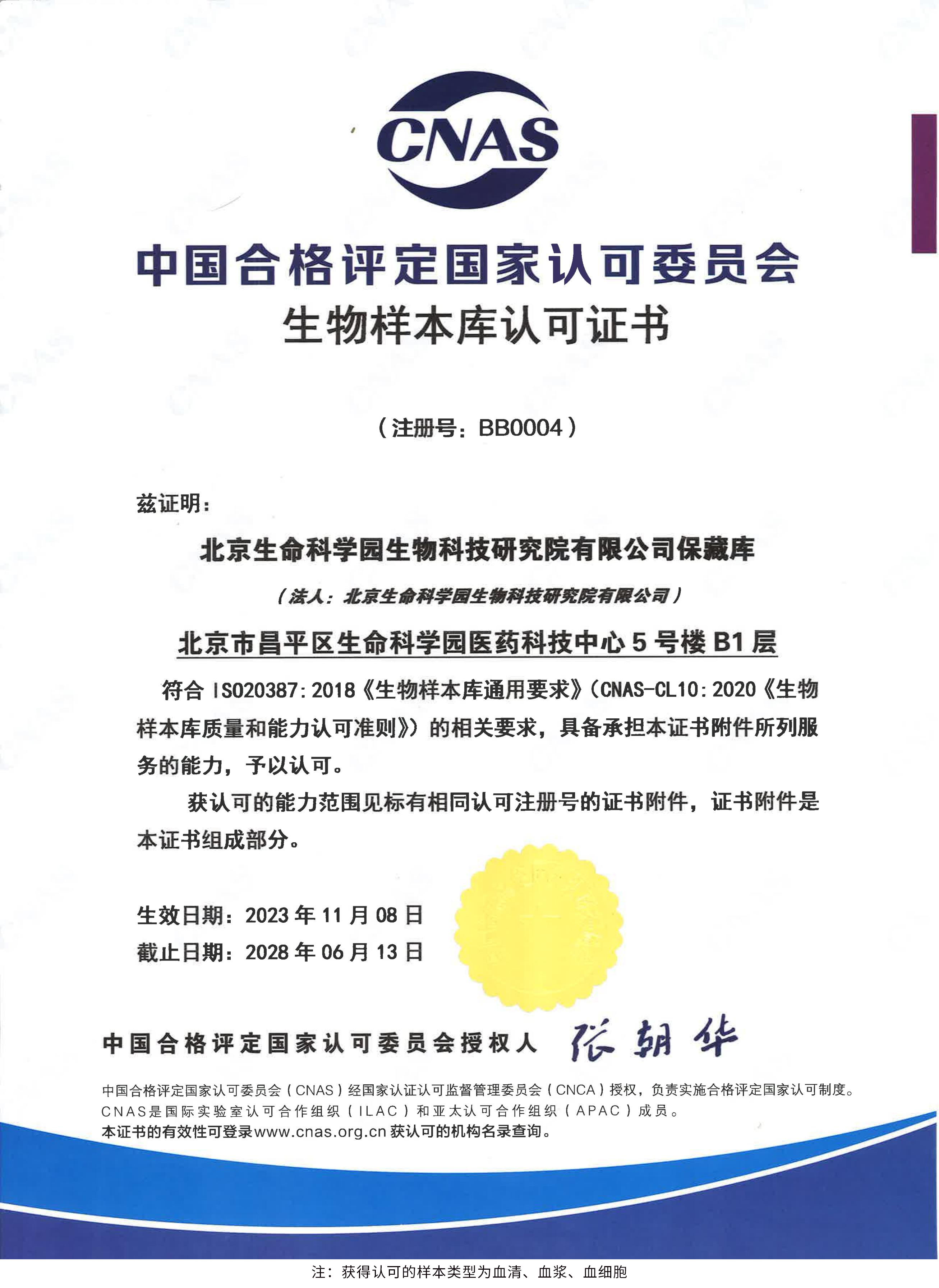 北京生命科學(xué)園生物科技研究院(以下簡稱“北京生物樣本資源庫”)(Biobank of Life Science Park,簡寫“BoLSP”)是一家由北京市科委和中關(guān)村生命科學(xué)園共同支持設(shè)立的第三方生物樣本庫公共服務(wù)平臺,秉承北京重大疾病臨床數(shù)據(jù)和樣本資源庫(以下簡稱“北京庫”)(Beijing Biobank of Clinical Resources,BBCR)十余年的發(fā)展成果,聚合眾多臨床樣本專家的專業(yè)共識,致力于在生命科學(xué)、生物醫(yī)藥研究領(lǐng)域發(fā)揮銜接樣本資源持有者與研究者的橋梁作用,解決生物樣本資源開發(fā)上下游信息不對稱、資源共享困難等問題。研究院在北京中關(guān)村生命科學(xué)園昌平園區(qū)建立了2000㎡生物樣本庫,最大存儲規(guī)模達(dá)1000萬份。研究院遵循CNAS-CL10:2020《生物樣本庫質(zhì)量和能力認(rèn)可準(zhǔn)則》,同時結(jié)合北京庫過去十年的工作經(jīng)驗(yàn)與教訓(xùn),建立了一套完善的生物樣本保藏質(zhì)量管理體系,從人、機(jī)、料、法、環(huán)、控多個角度,實(shí)現(xiàn)生物樣本保藏過程的全面質(zhì)量控制,先后獲得國家科技部頒發(fā)的人類遺傳資源保藏行政許可證書和中國合格評定國家認(rèn)可委員會(China National Accreditation Service for Conformity Assessment,CNAS)頒發(fā)的“CNAS認(rèn)可證書”。